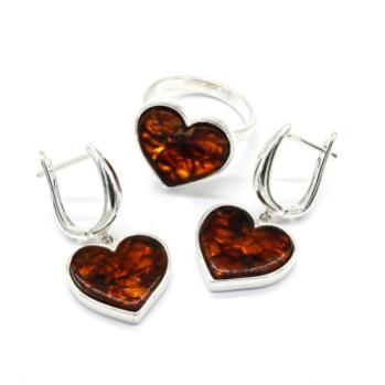 •Комплект с натуральной янтарной крошкой, за основу взята красная полимерная смола.