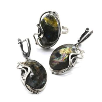 •Габарит кольца 33*44мм, серьги: 28*40мм., вес 22,6 гр.