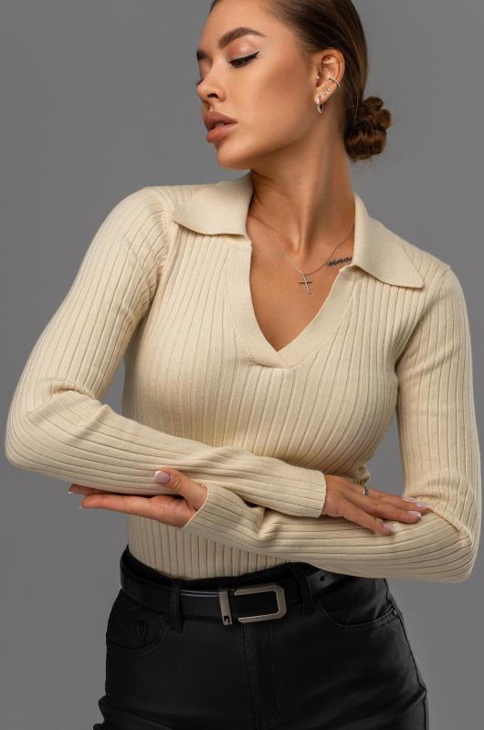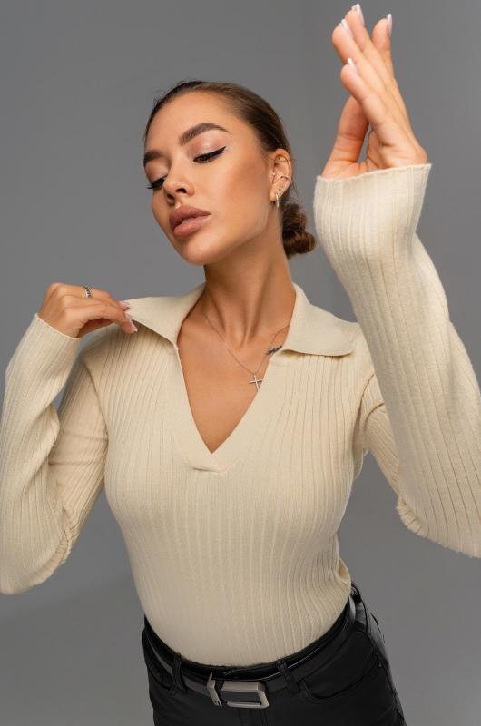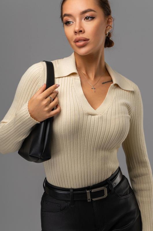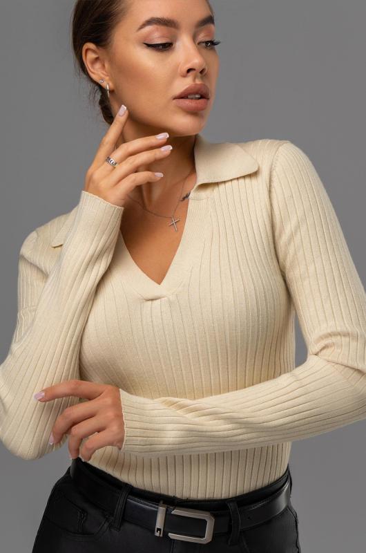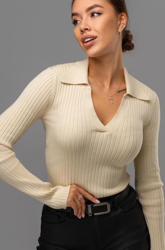 Женский джемпер с V образным вырезом – универсальный выбор на осень и зиму. Вязаный джемпер поло станет незаменимой частью гардероба в демисезонный период. Однотонный пуловер с отложным воротником поможет создать образы для работы в офисе. Бежевый пуловер в рубчик подойдет для повседневных прогулок.; Преимущества:; — вязаный трикотаж из вискозы и полиамида – мягкий и приятный к телу;; — базовый джемпер прямого кроя создаёт элегантный силуэт;; — V-вырез и отложной воротник визуально вытягивают шею;; — вязаный поло с длинным рукавом сохраняет тепло в прохладные осенние и зимние дни.; Демисезонная кофта с в образным вырезом подойдет на каждый день. Теплая облегающая кофта станет основой стильных образов.; Внимание: джемпер маломерит на один размер.; Бренд Happyfox ; Страна: Бангладеш ; Состав: 40% вискоза, 40% полиамид, 20% полиэстер ; Материал: Вязаный трикотаж
