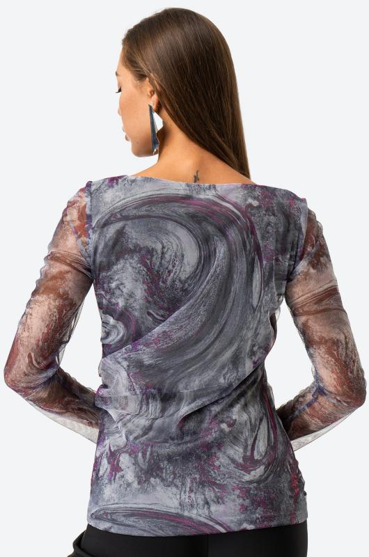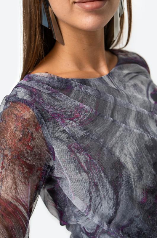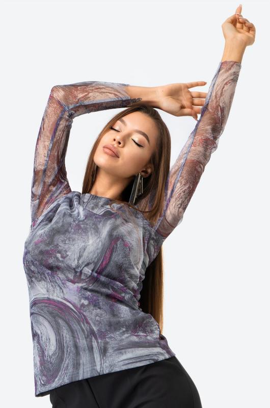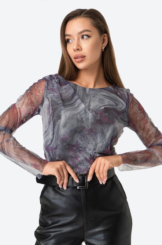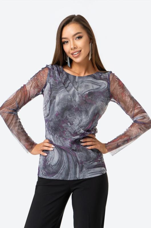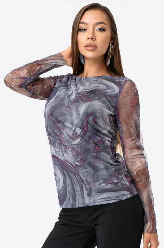 Позволь себе быть восхитительной и обворожительной! Женский лонгслив выполнен из прочной сетки с добавлением вискозы с эластаном. Прозрачные рукава и мраморный принт добавляют нежности и изысканности, которая будет сопровождать тебя целый день.; Лонг выполнен в серо-малиновом цвете. Приталенный крой моделирует фигуру, делая силуэт притягательным. Вырез выделяет шею, подчёркивая чувственный образ. Обтягивающая кофта в сеточку универсальна, в ней будет комфортно и удобно летом, весной и даже осенью. ; Трендовый сетчатый лонг не оставит равнодушным никого. Нарядный летний лонгслив придаст уверенности и дерзости каждому дню. Полупрозрачная кофта идеальна для повседневных образов в стиле smart casual (смарт кэжуал).; Откройте для себя шик и утонченность с потрясающим лонгсливом!; Модель Анфиса, ее рост 170, параметры: 88-67-97. На ней размер 44.; Бренд Happyfox ; Серия: Happyfox: Сетка ; Страна: Киргизия ; Состав: 80% полиэстер, 15% вискоза, 5% эластан ; Материал: Сетка