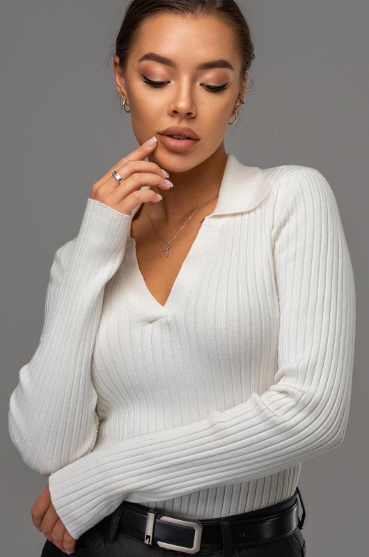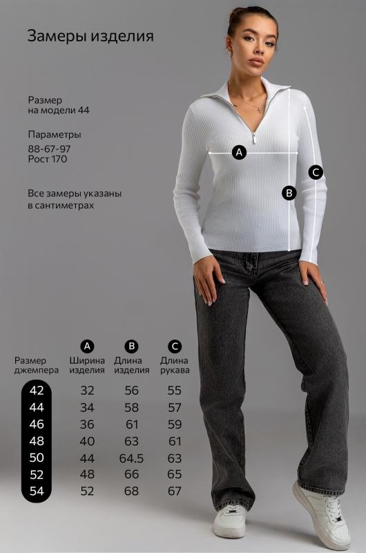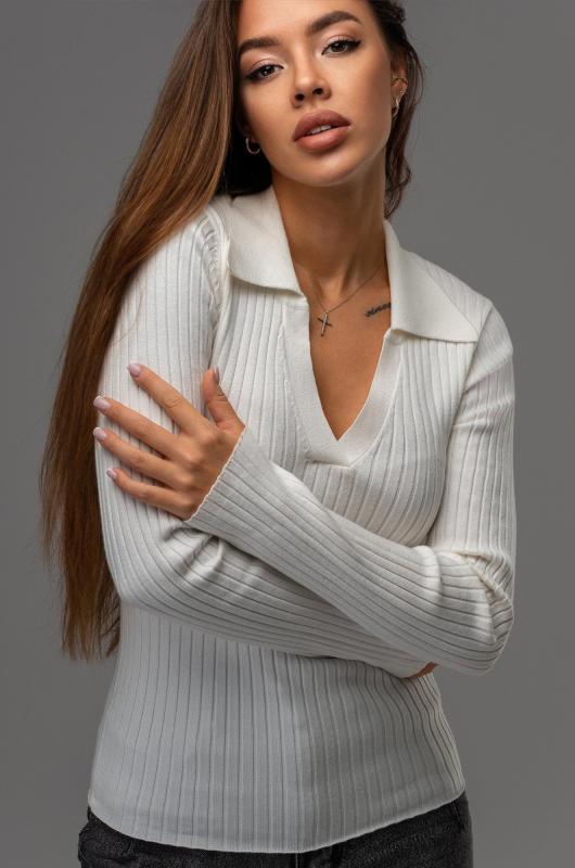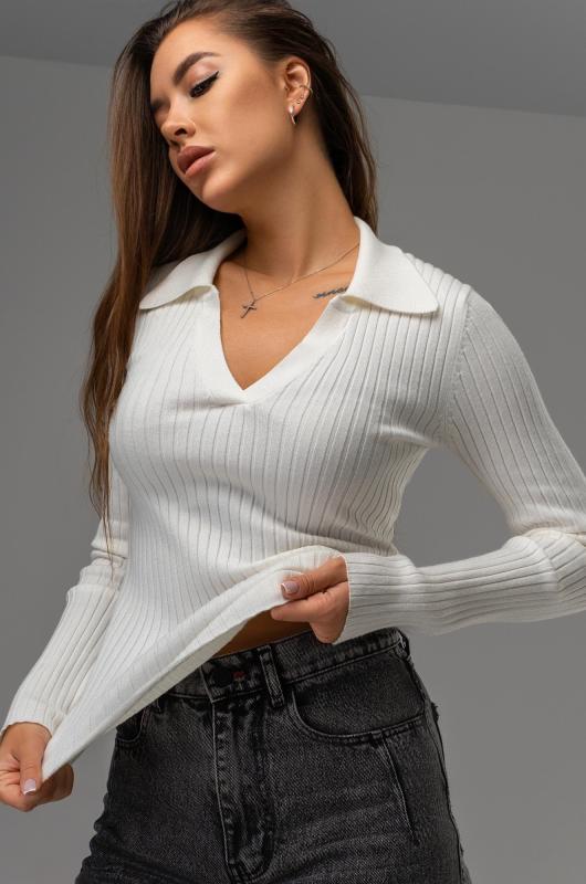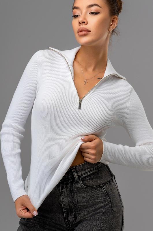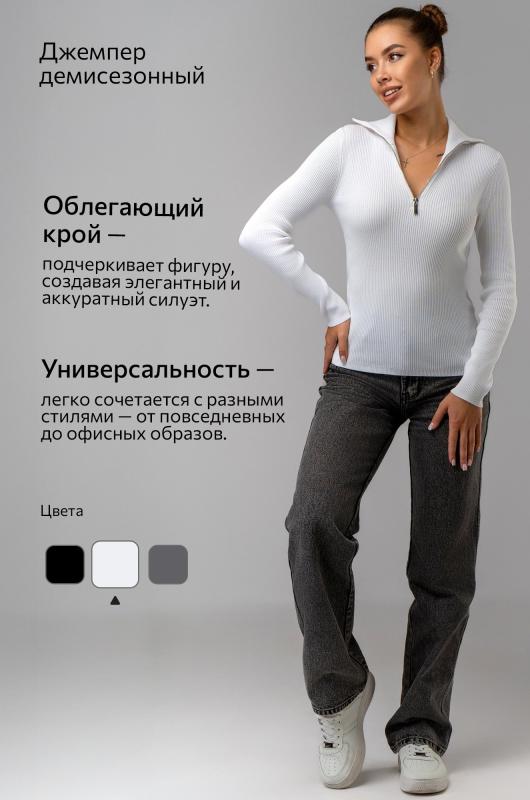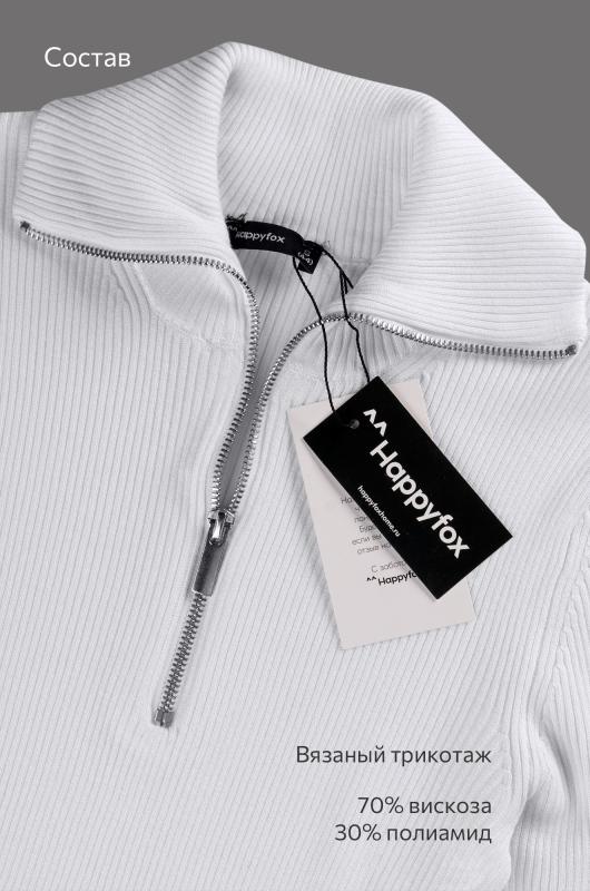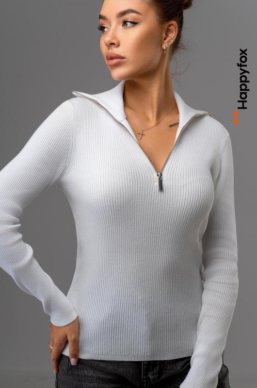 Вязаный джемпер поло в рубчик – современная и стильная база для осени и весны. Облегающий джемпер с длинным рукавом легко вписывается в повседневные и офисные образы.; Преимущества:; — женский джемпер на замке выполнен из мягкого вязаного трикотажа лапша;; — вискоза – мягкая и приятная к телу, полиэстер повышает износостойкость и сохраняет форму после стирок;; — однотонный белый джемпер на молнии универсален;; — облегающий крой подчеркивает фигуру и создает аккуратный силуэт;; — воротник на молнии добавляет современный акцент и удобство;; — джемпер на молнии подходит для офиса.; Джемпер на полузамке для женщин – это удачное сочетание практичности, комфорта и стиля. Приталенный джемпер станет основой вашего гардероба и подчеркнет элегантность в любых образах.; Бренд Happyfox ; Страна: Бангладеш ; Состав: 70% вискоза, 30% полиамид ; Материал: Вязаный трикотаж