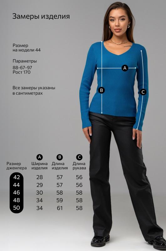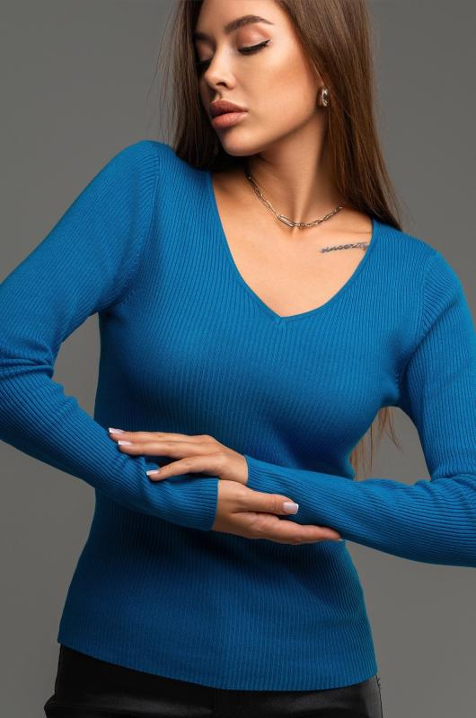 Женский джемпер в рубчик с длинным рукавом станет незаменимой частью гардероба в осенний и весенний периоды. Однотонная модель поможет создать стильные образы для работы в офисе и учебы. ; Преимущества:; — вязаный трикотаж из вискозы и полиамида – мягкий, приятный к телу и износостойкий;; — базовый джемпер женский прямого кроя создаёт элегантный силуэт;; — V-вырез добавляет женственности и визуально вытягивает шею;; — синий джемпер подходит для встреч с друзьями или повседневных выходов.; Трикотажный пуловер для женщин — это стильное и практичное решение на каждый день. ; Внимание: модель маломерит на 1 размер, обратите внимание на замеры!; Бренд Happyfox ; Страна: Бангладеш ; Состав: 70% вискоза, 30% полиамид ; Материал: Вязаный трикотаж
