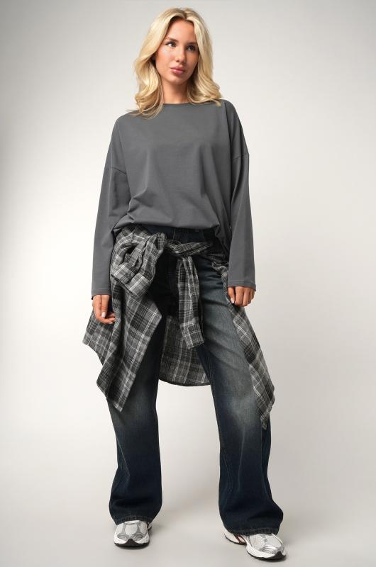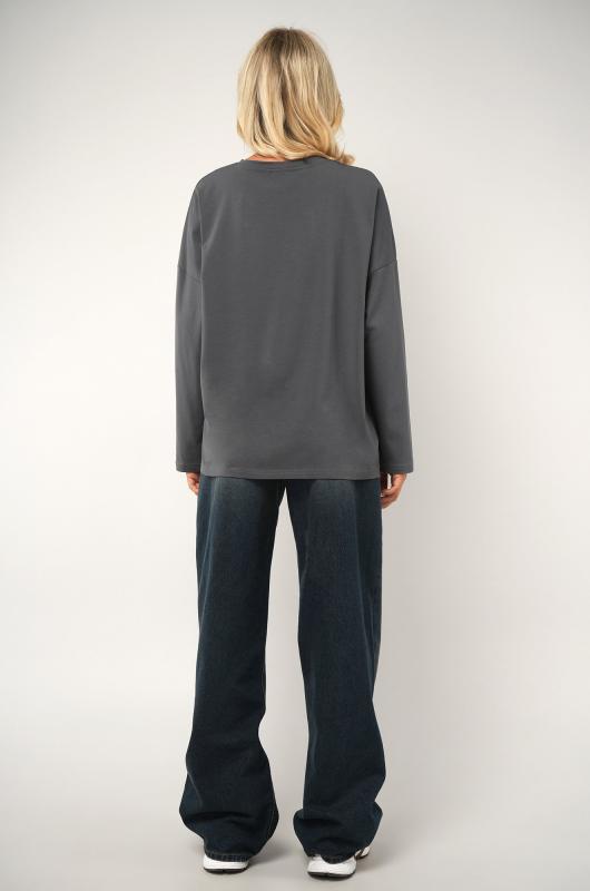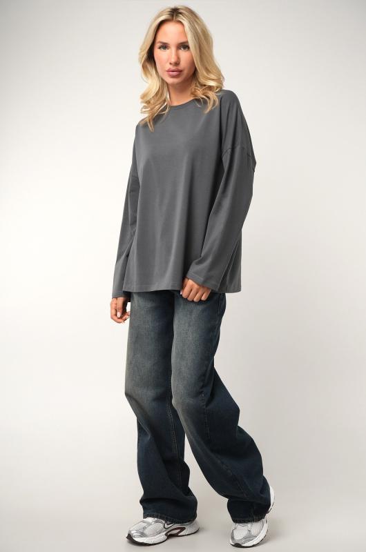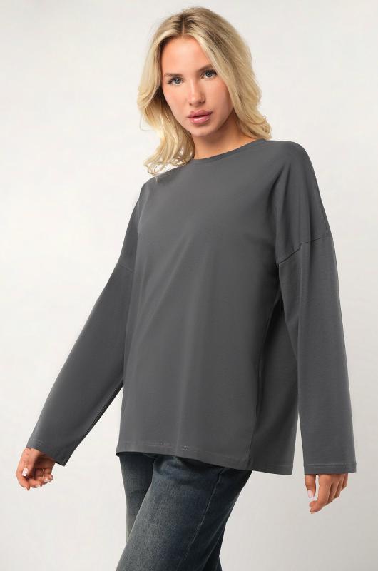 Комфорт с характером — темно-серый женский лонгслив в стиле оверсайз создаёт расслабленное настроение и стильно завершает повседневный образ. Свободный хлопковый лонг идеален для лета, прохладных осенних вечеров и в демисезон. ; Преимущества: ; – плотный трикотаж (футер 240 г-м²) — не просвечивает, отлично держит форму;; – натуральный хлопок с лайкрой — мягкий, эластичный, приятный к телу;; – наружные необработанные швы — трендовый акцент в духе минимализма;; – спущенная линия плеч и круглый вырез — комфортно и удобно на каждый день;; – универсальный дизайн — подходит как базовый слой осенью.; Лонгслив прямого кроя — выбор для женщин, которые ценят свободу движений и натуральные ткани. Трикотажный лонг пригодится для прогулок, учёбы, отдыха и путешествий.; Бренд Happyfox ; Страна: Узбекистан ; Состав: 95% хлопок, 5% лайкра ; Материал: Футер двухнитка ; Плотность ткани: 240 г-м2