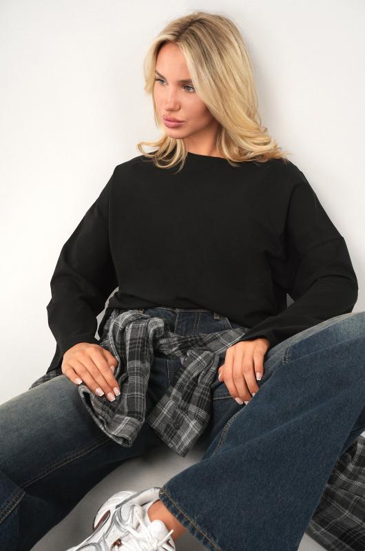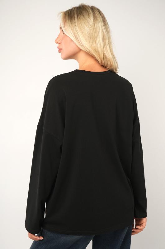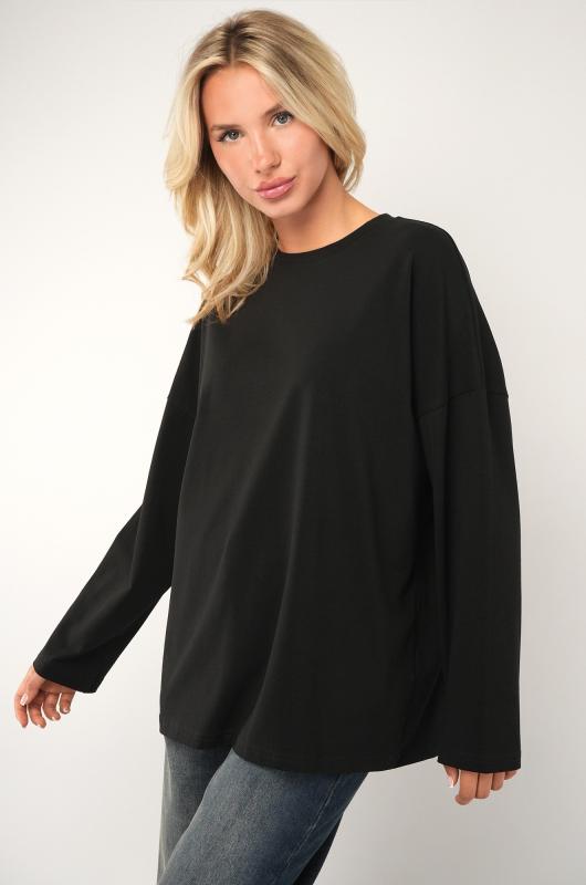 Комфорт с характером — черный женский лонгслив в стиле оверсайз создаёт расслабленное настроение и стильно завершает повседневный образ. Свободный хлопковый лонг идеален для лета, прохладных осенних вечеров и в демисезон. ; Преимущества: ; – плотный трикотаж (футер 240 г-м²) — не просвечивает, отлично держит форму;; – натуральный хлопок с лайкрой — мягкий, эластичный, приятный к телу;; – наружные необработанные швы — трендовый акцент в духе минимализма;; – спущенная линия плеч и круглый вырез — комфортно и удобно на каждый день;; – универсальный дизайн — подходит как базовый слой осенью.; Лонгслив прямого кроя — выбор для женщин, которые ценят свободу движений и натуральные ткани. Трикотажный лонг пригодится для прогулок, учёбы, отдыха и путешествий.; Бренд Happyfox ; Страна: Узбекистан ; Состав: 95% хлопок, 5% лайкра ; Материал: Футер двухнитка ; Плотность ткани: 240 г-м2