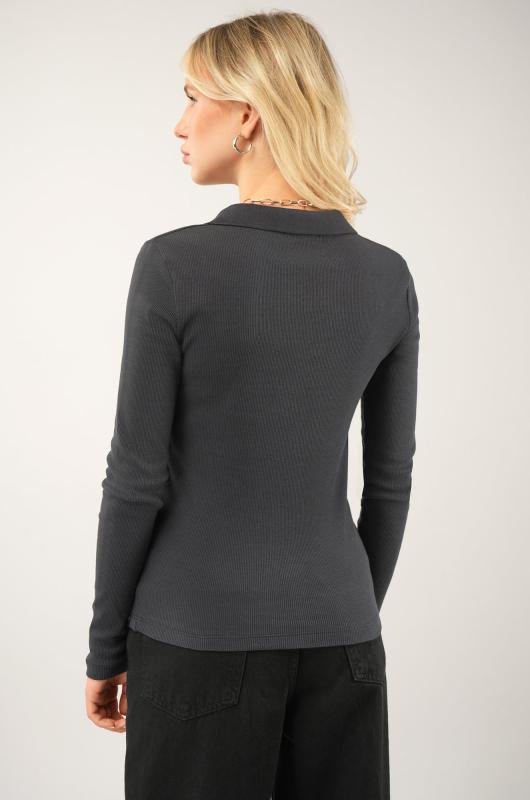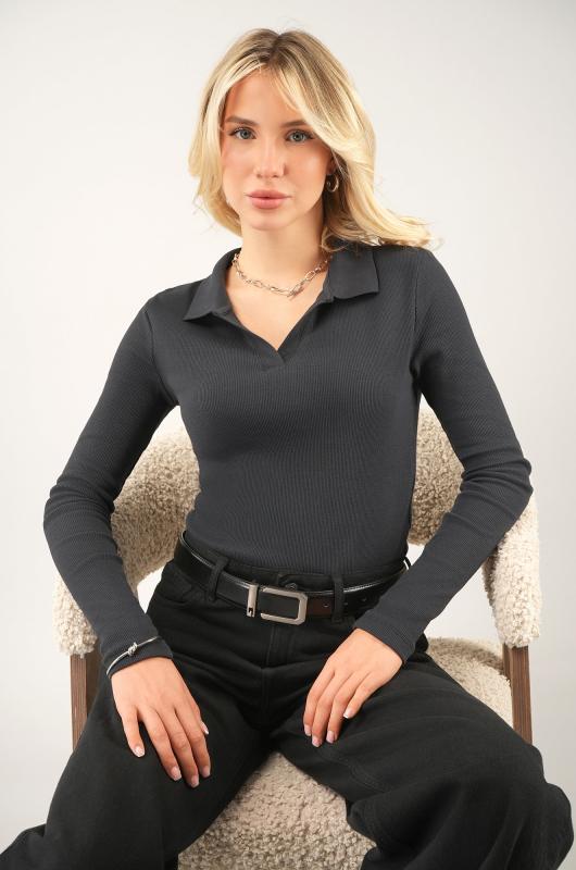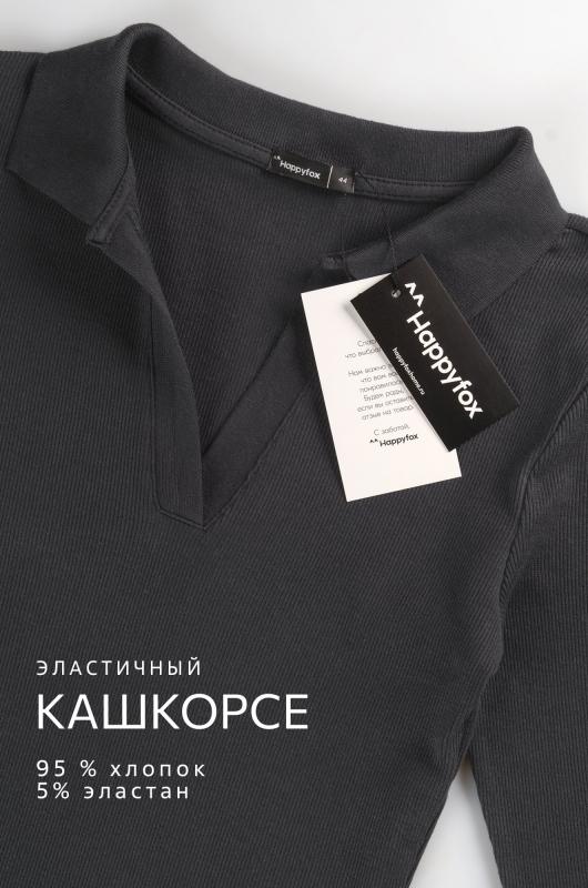 Стильный, удобный и женственный — однотонный женский лонгслив поло черного цвета станет идеальной базой для любого образа! Мягкий трикотаж в рубчик красиво подчеркивает фигуру и дарит комфорт в течение всего дня. Черный лонг с V-вырезом легко впишется и в деловой стиль, и в расслабленный повседневный образ.; Преимущества: ; • натуральный дышащий хлопок в составе приятен к телу; ; • эластичная ткань с лайкрой хорошо тянется, сохраняя форму; ; • удобный крой и хлопковый трикотаж — комфорт на весь день; ; • V-образный вырез и отложной воротник — женственные акценты в каждом движении; ; • длинный рукав — отличное решение для осеннего и весеннего сезонов.; Облегающий лонгслив лапша для женщин станет универсальным базовым вариантом. Трикотажная футболка с длинным рукавом гармонично смотрится в офисных, уличных и спортивных образах, помогая создавать стильные и уверенные сочетания каждый день.; Бренд Happyfox ; Страна: Узбекистан ; Состав: 95% хлопок, 5% эластан ; Материал: Кашкорсе