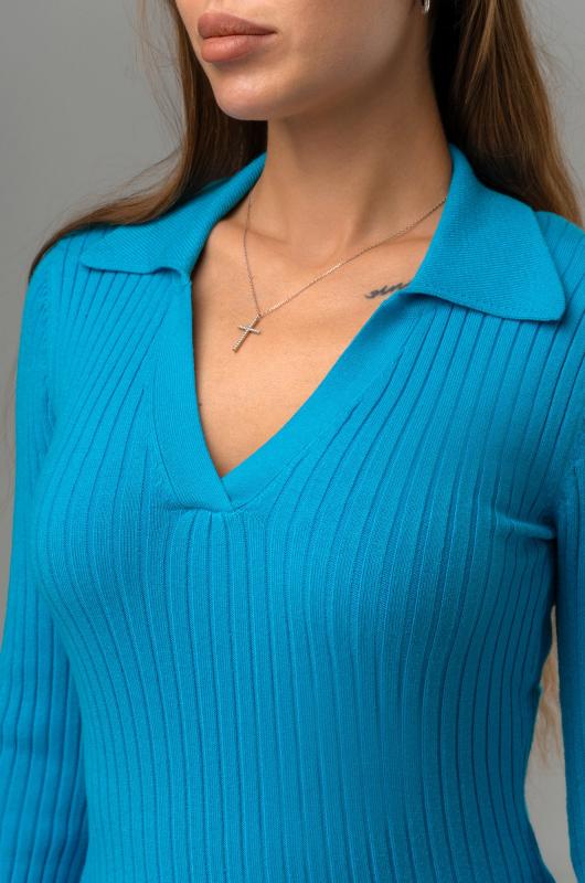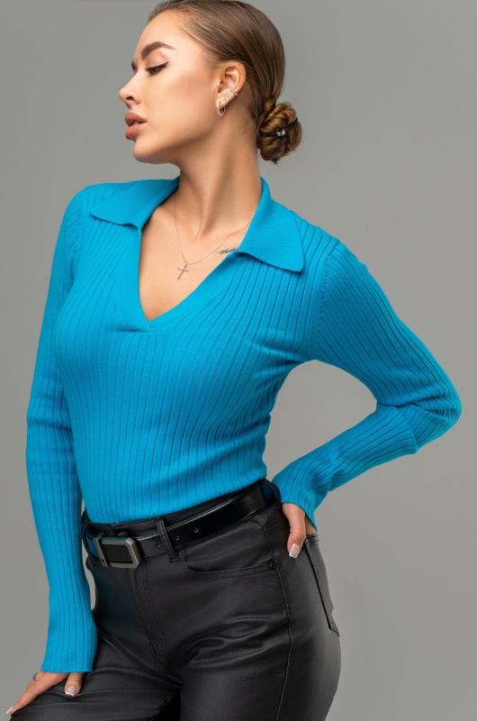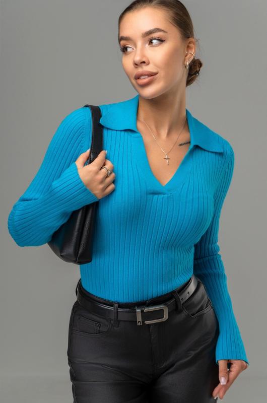 Женский джемпер с V образным вырезом – универсальный выбор на осень и зиму. Вязаный джемпер поло станет незаменимой частью гардероба в демисезонный период. Однотонный пуловер с отложным воротником поможет создать образы для работы в офисе. Голубой пуловер в рубчик подойдет для повседневных прогулок.; Преимущества:; — вязаный трикотаж из вискозы и полиамида – мягкий и приятный к телу;; — базовый джемпер прямого кроя создаёт элегантный силуэт;; — V-вырез и отложной воротник визуально вытягивают шею;; — вязаный поло с длинным рукавом сохраняет тепло в прохладные осенние и зимние дни.; Демисезонная кофта с в образным вырезом подойдет на каждый день. Теплая облегающая кофта станет основой стильных образов.; Внимание: джемпер маломерит на один размер.; Бренд Happyfox ; Страна: Бангладеш ; Состав: 40% вискоза, 40% полиамид, 20% полиэстер ; Материал: Вязаный трикотаж