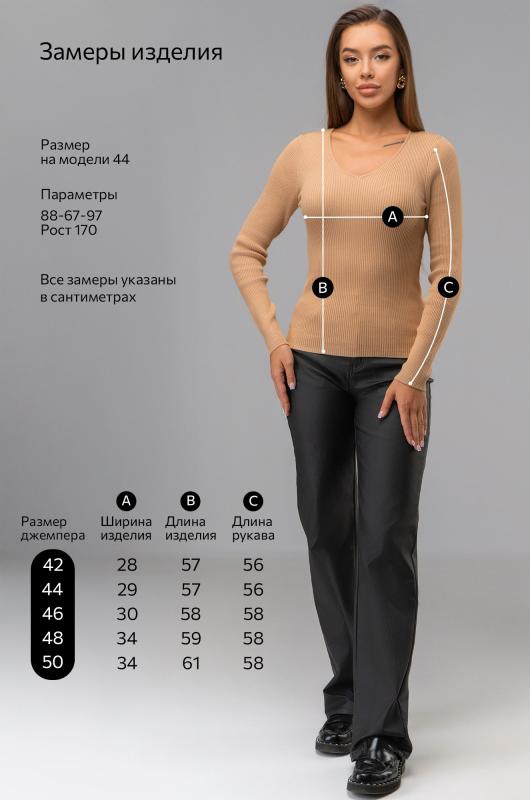 Женский джемпер в рубчик с длинным рукавом станет незаменимой частью гардероба в осенний и весенний периоды. Однотонная модель поможет создать стильные образы для работы в офисе и учебы. ; Преимущества:; — вязаный трикотаж из вискозы и полиамида – мягкий, приятный к телу и износостойкий;; — базовый джемпер женский прямого кроя создаёт элегантный силуэт;; — V-вырез добавляет женственности и визуально вытягивает шею;; — бежевый джемпер подходит для встреч с друзьями или повседневных выходов.; Трикотажный пуловер для женщин — это стильное и практичное решение на каждый день. ; Внимание: модель маломерит на 1 размер, обратите внимание на замеры!; Бренд Happyfox ; Страна: Бангладеш ; Состав: 70% вискоза, 30% полиамид ; Материал: Вязаный трикотаж