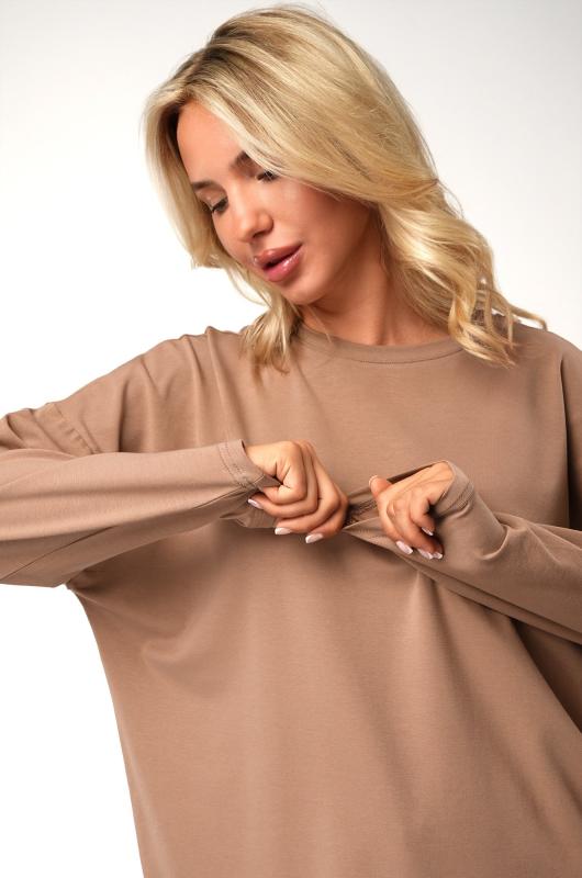 Женский лонгслив оверсайз создан, чтобы дарить свободу и комфорт! ; Однотонный лонг карамельного цвета смотрится стильно и сдержанно, а хлопковый трикотаж делает его невероятно приятным к телу. Демисезонный джемпер прямого кроя со спущенным плечом и круглым вырезом легко впишется в любой стиль. ; Преимущества:; – трикотажная ткань мягкая и дышащая;; – хлопок с добавлением эластана для большей прочности (плотность 160 г-м2);; – удобный оверсайз для свободы движений;; – универсальная базовая модель на каждый день;; – подходит как для девушек, так и для подростков.; Размерный ряд позволяет носить модель как подростковую кофту и как лонгслив для женщин. Подойдёт для офиса и для прогулки — всегда выглядит легко и современно.; Бренд Happyfox ; Страна: Узбекистан ; Состав: 95% хлопок, 5% эластан ; Материал: Кулирная гладь ; Плотность ткани: 160 г-м2