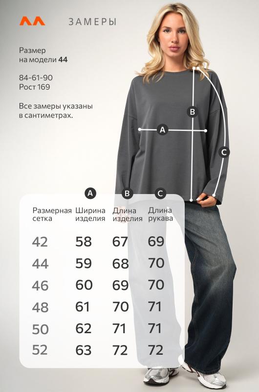 Женский лонгслив оверсайз создан, чтобы дарить свободу и комфорт! ; Однотонный лонг темно-серого цвета смотрится стильно и сдержанно, а хлопковый трикотаж делает его невероятно приятным к телу. Демисезонный джемпер прямого кроя со спущенным плечом и круглым вырезом легко впишется в любой стиль. ; Преимущества:; – трикотажная ткань мягкая и дышащая;; – хлопок с добавлением эластана для большей прочности (плотность 160 г-м2);; – удобный оверсайз для свободы движений;; – универсальная базовая модель на каждый день;; – подходит как для девушек, так и для подростков.; Размерный ряд позволяет носить модель как подростковую кофту и как лонгслив для женщин. Подойдёт для офиса и для прогулки — всегда выглядит легко и современно.; Бренд Happyfox ; Страна: Узбекистан ; Состав: 95% хлопок, 5% эластан ; Материал: Кулирная гладь ; Плотность ткани: 160 г-м2