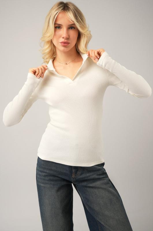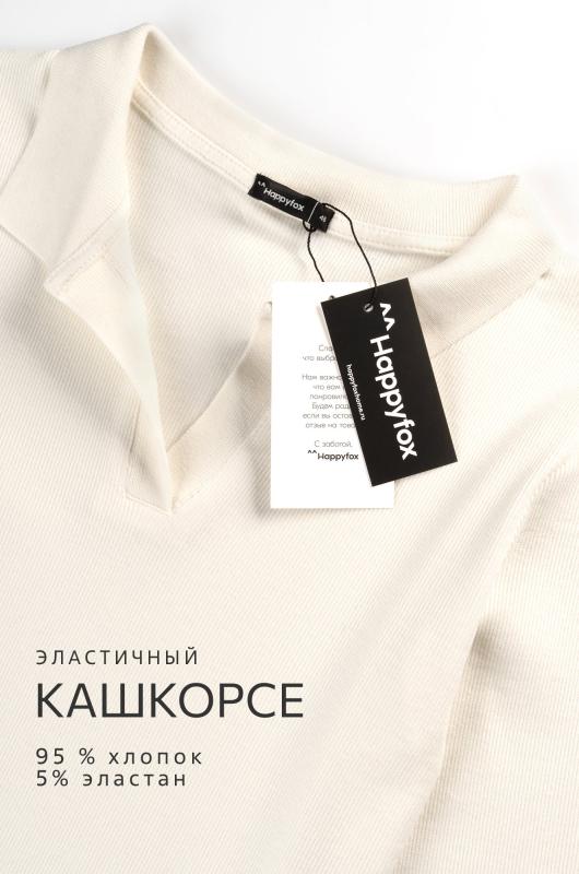 Стильный, удобный и женственный — однотонный женский лонгслив поло молочного цвета станет идеальной базой для любого образа! Мягкий трикотаж в рубчик красиво подчеркивает фигуру и дарит комфорт в течение всего дня. Белый лонг с V-вырезом легко впишется и в деловой стиль, и в расслабленный повседневный образ.; Преимущества: ; • натуральный дышащий хлопок в составе приятен к телу; ; • эластичная ткань с лайкрой хорошо тянется, сохраняя форму; ; • удобный крой и хлопковый трикотаж — комфорт на весь день; ; • V-образный вырез и отложной воротник — женственные акценты в каждом движении; ; • длинный рукав — отличное решение для осеннего и весеннего сезонов.; Облегающий лонгслив лапша для женщин станет универсальным базовым вариантом. Трикотажная футболка с длинным рукавом гармонично смотрится в офисных, уличных и спортивных образах, помогая создавать стильные и уверенные сочетания каждый день.; Бренд Happyfox ; Страна: Узбекистан ; Состав: 95% хлопок, 5% эластан ; Материал: Кашкорсе