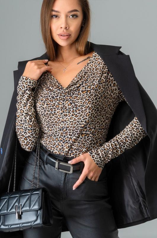 Леопардовый женский лонгслив с вырезом качели выполнен из нежной вискозы с добавлением лайкры. Облегающая модель подчеркивает изящные изгибы тела. Вискоза дарит мягкость и комфорт.; Приталенная модель с принтом леопард не только не оставит девушку незамеченной, но и подарит комфорт в течение дня. Благодаря добавлению лайкры трикотажный лонгслив отлично садится по фигуре.; Обтягивающий силуэт в тандеме с длинными рукавами подчеркивает фигуру и стройнит, а вырез качели изящно открывает шею и ключицы.; Нарядный лонгслив с драпировкой поможет создать образ в любом стиле. Демисезонный лонг с анималистичным рисунком идеален на каждый день. ; Лонг из трикотажа подойдет для работы в офисе. Красивый лонгслив для женщин идеален для вечерних и праздничных образов.; Модель Анфиса, ее рост 170, параметры: 88-67-97. На ней размер 46.; Бренд Happyfox ; Страна: Россия ; Состав: 95% вискоза, 5% лайкра ; Материал: Вискоза ; Плотность ткани: 210 г-м2