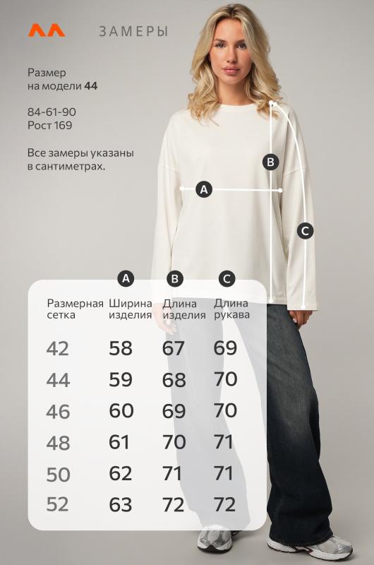 Женский лонгслив оверсайз создан, чтобы дарить свободу и комфорт! ; Однотонный лонг молочного цвета смотрится стильно и сдержанно, а хлопковый трикотаж делает его невероятно приятным к телу. Демисезонный джемпер прямого кроя со спущенным плечом и круглым вырезом легко впишется в любой стиль. ; Преимущества:; – трикотажная ткань мягкая и дышащая;; – хлопок с добавлением эластана для большей прочности (плотность 160 г-м2);; – удобный оверсайз для свободы движений;; – универсальная базовая модель на каждый день;; – подходит как для девушек, так и для подростков.; Размерный ряд позволяет носить модель как подростковую кофту и как лонгслив для женщин. Подойдёт для офиса и для прогулки — всегда выглядит легко и современно.; Бренд Happyfox ; Страна: Узбекистан ; Состав: 95% хлопок, 5% эластан ; Материал: Кулирная гладь ; Плотность ткани: 160 г-м2