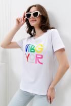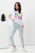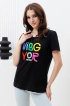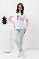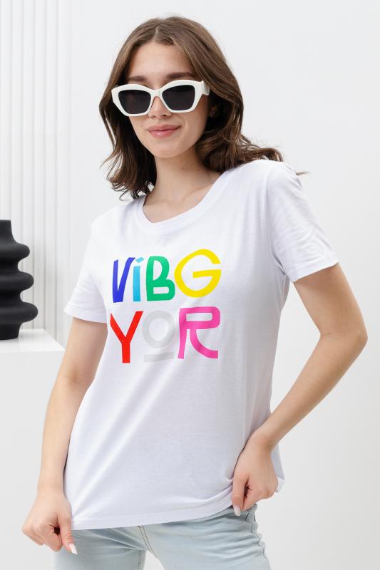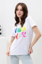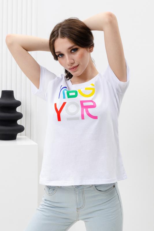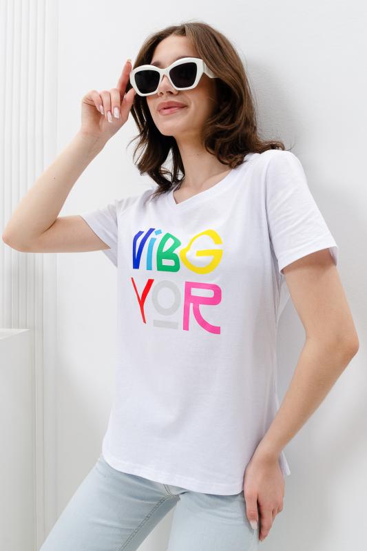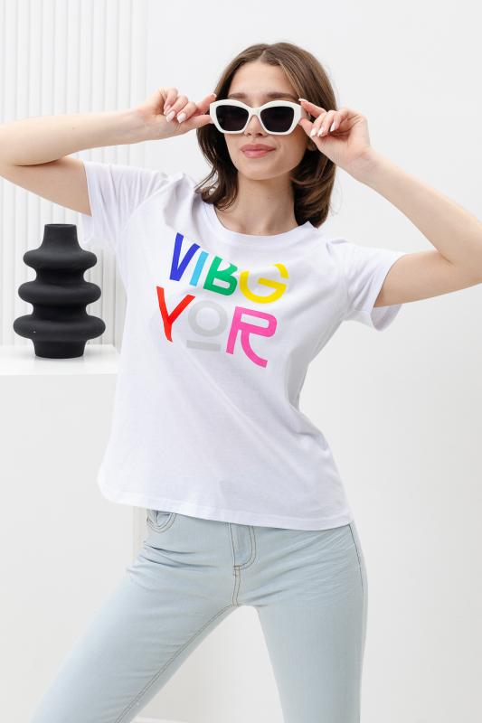 Мягкая трикотажная футболка приталенного силуэта с разноцветным принтом выполнена из 100% хлопка, который не просвечивает. Незаменимая вещь на весну и лето. Стильная модная футболка с короткими рукавами сочетается как со спортивными штанами, так и с классическими брюками, юбками, шортами. Идеальна под пиджак, жакет, кардиган. Это универсальная вещь, которая прекрасно дополнит ваш гардероб и поможет создать интересные образы не только в летние теплые дни, но и в зимнее время года. Подходит для занятий спортом, тренировок, фитнеса, бега, йоги, баскетбола, волейбола, хип хопа, а также для физкультуры.