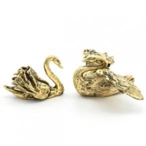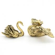 Пара лебедей литые из бронзы, 80*45*30мм, малый 43*26*30мм