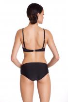 Твердая чашка на косточках, на спине застежки, бретели регулируются.