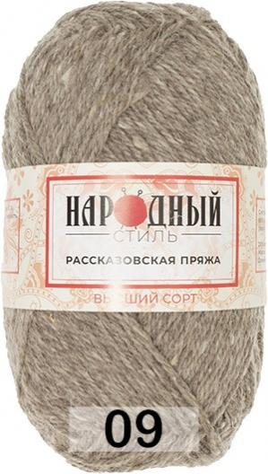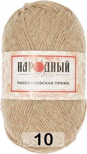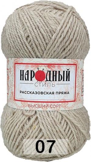 Пряжа Рассказовская Народный стиль изготовлена из полугрубой овечьей шерсти. Она идеальна для вязания изделий в рустикальном стиле, для носков и варежек. Изделия будут теплыми и, благодаря полиэфиру, более долговечными. Рекомендованы спицы 4,5-5, плотность вязания 26х38. Производитель допускает отклонение по весу +-- 15 гр, по длине нити +-- 20 м.