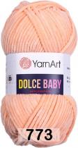 ЯрнАрт долче бэби. Пряжа однотонного крашения, синель. Производители рекомендуют спицы №4.5 и крючок №5. На вязаном образце 10х10см получается 18 рядов по 20 петель.