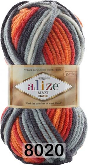 Ализе суперлана макси батик. Полушерстяная принтованная пряжа для теплых осенне-зимних вещей: джемперов, пальто, кардиганов, шапок, снудов. Рекомендуется также для вязания домашних тапочек. Хорошая крутка нити позволяет ровно ложиться связанному полотну. Мягкая пряжа, комфортная в работе - подойдет даже начинающим вязальщицам. Спицы № 8 - 10.