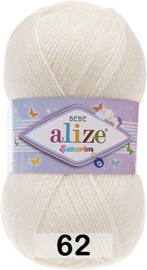 Ализе секерим бебе Ализе. Внимание! Могут попадаться этикетки старого и с новой образца.Идеальная однотонная акриловая пряжа ярких расцветок для вязания изделий самым маленьким.Производители рекомендуют спицы: 3-4, крючок 2-4. Рекомендации по уходу: Деликатная стирка при температуре 30 градусов. Не отбеливать. Гладить при температуре не выше 120 градусов. Сухая чистка