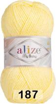 Ализе май бэби. Мягкая, «нескрипучая», универсальная нить. Практически не закатывается. Эта пряжа подойдет для вязания свитеров, жилетов, кардиганов, шарфов, шапок, аксессуаров, пледов и других изделий. My Baby станет отличным аналогом такой детской пряжи, как YarnArt Baby Инструменты: спицы 3 – 4, крючок 2 - 3.