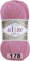 Ализе дива. Легкая шелковистая пряжа для весенних или летних вещей. Приятная на ощупь, гигроскопичная она подойдет для сарафанов, туник, платьев, легких костюмов, кофт, шалей и накидок. Пряжа не скатывается, не вызывает аллергию, не линяет и не оставляет ворсинок на другой одежде. Инструменты: спицы 2,5-3,5 и крючок 1,0 – 3,0. Плотность вязания: 10 см. х 10 см. = 40р.х30п. . Рекомендации по уходу: деликатная ручная стирка при 30°С, не отжимать в стиральной машине, не отбеливать хлоросодержащими веществами. Глажение на минимальной температуре. Сушите на горизонтальной поверхности: предварительно придав изделию естественную форму.