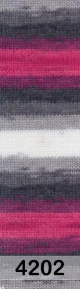Ализе буркум батик. Классическая демисезонная пряжа длинно-секционного крашения. Мягкая, «нескрипучая», плотно скрученная эластичная нить , не деформируется после распускания. Петли ложатся ровно, полотно не «косит», нитка не перекручивается. Вещи приятны к коже, не колются, не линяют, не теряют своей формы, не образуют катышков. Эта пряжа за счет красивых цветовых переходов поможет создать неповторимые модели свитеров, жилетов, кардиганов, шарфов, шапок, аксессуаров, пледов и других изделий. Инструменты: спицы 4 – 6, крючок 2 - 4. Плотность вязания: 10 см. х 10 см. = 15 петель х 20 рядов. Готовое изделие надолго сохранит первоначальный внешний вид, устойчиво к моли, не выгорает на солнце, не растягивается, не дает усадку после стирки. Рекомендации по уходу: деликатная стирка при 30°С, не отжимать в стиральной машине, не отбеливать хлоросодержащими веществами. Глажение на минимальной температуре. Сушите на горизонтальной поверхности: предварительно придав изделию естественную форму.