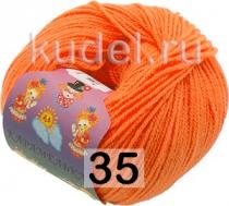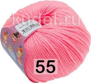 Пряжа предназначена специально для детских изделий. По ощущениям очень мягкая, даже шелковистая. При вязании пряжа не скрипит, хотя это 100% акрил. Крючок, спицы: №№ 3-3,5.