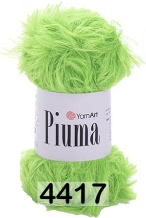 ЯрнАрт Пиума. Piuma - фантазийная пряжа травка, с имитацией меха. Из этой пряжи можно вязать куртки, жилеты, воротники, шапки, так же она хороша для игрушек и различных предметов интерьера - пледов, чехлов для подушек, пуфиков. Не смотря на то, что состав полостью искусственный, изделия получаются очень теплыми и мягкими, приятными на ощупь. . Рекомендуемый размер крючка: №5 Рекомендуемый размер спиц: №5