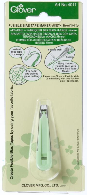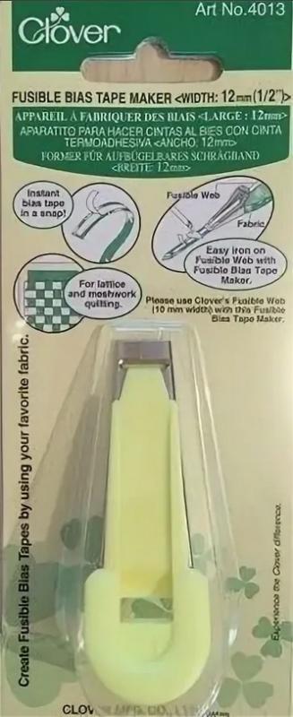 Косая бейка изготавливается за несколько минут!Инструкция: (1) Вставить термоленту (легкоплавкую сетку) в верхний желоб. (2) Вставить в нижний желоб полоску ткани, отрезанную по диагонали. (3) Потянуть оба материала одновременно и пригладить утюгом. (4) Удалить клейкую подложку и прикрепить бейку в нужном месте.