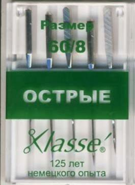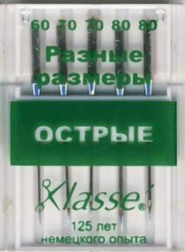 Иглы Klasse (Классе) - это старинная немецкая марка, которая имеет за плечами 125 лет опыта по производству машинных игл. Острые (K5) - идеально подходят для шелка, тканей с микрофиброй и других плотно тканых материалов. Острый кончик разработан для совершенно прямых стежков в отстрочке и в обработке петель.Доступные размеры: 60-8, 70-10, 80-12, 90-14 и наборы разных размеров. Количество игл: 5 шт.Набор (арт.A6135-MIX): N60-1шт, N70-2шт,N80-2шт.