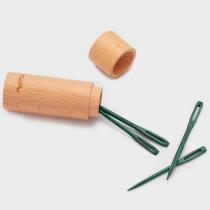 Набор из штопальных игл сочетающихся оттенков бирюзы, изготовленный из высокоплотной ламинированной древесины. В комплекте 2 маленьких и две больших иглы, что покрывает все потребности в шитье.Упакован в многоразовый деревянный футляр цилиндрической формы, на который нанесен узор из цветочных мотивов.