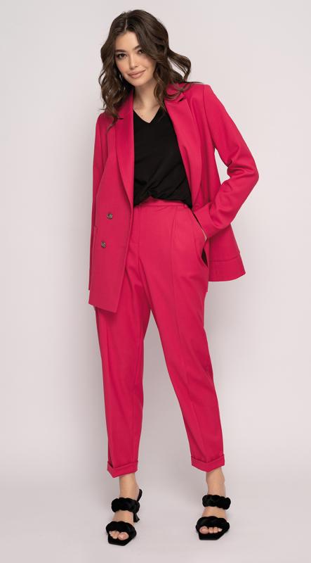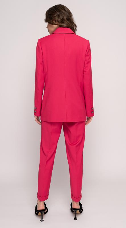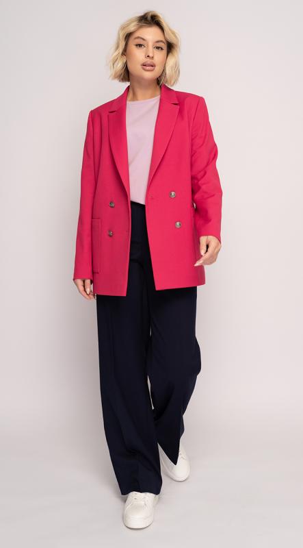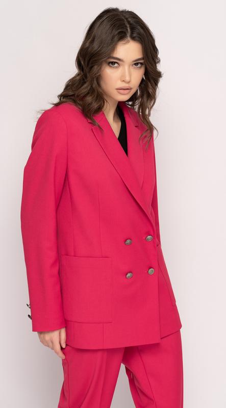 Двубортный жакет из костюмной поливискозы на подкладе идеально впишется в гардероб любой женщины. Благодаря насыщенному оттенку, жакет станет ярким акцентом как в повседневном образе, так и в вечернем, а полуприлегающий силуэт придаст лаконичности. Четкая линия плеч, удлиненные лацканы, рельефные вытачки моделируют графичный образ. Рукав втачной полной длины. Застежка на петли и пуговицы.