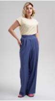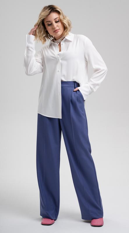 Обязательный предмет базового гардероба – стильные широкие брюки с 2-мя мягкими защипами из костюмной поливискозы. Брюки с карманами, с удобной посадкой на талии и на притачном поясе с резиной по задней половинке, застегивающиеся на крючок. Вытянутая линия заутюженных стрелок удлиняет рост и визуально стройнит.