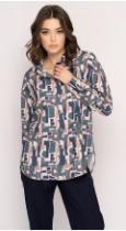 Эффектная рубашка свободного силуэта с отложным воротником на стойке из вискозного крепа с принтом "