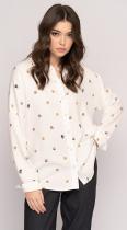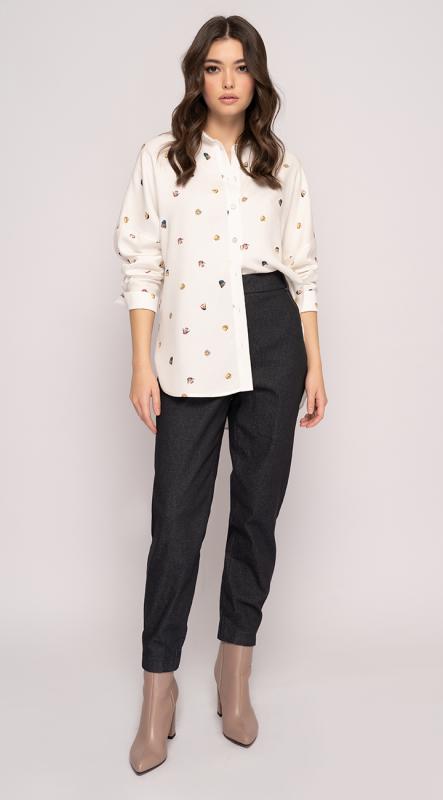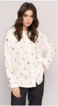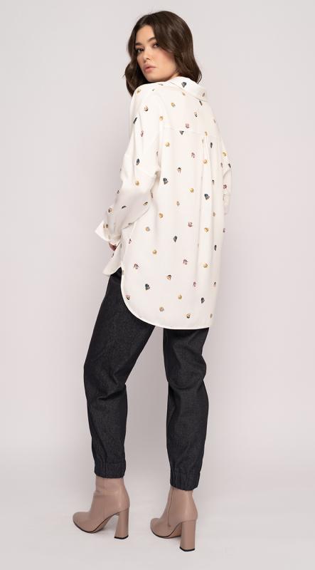 Эффектная рубашка свободного кроя со спущенной линией плеча, с воротником рубашечного кроя из вискозы с авторским принтом - подарит вам комфорт на весь день и добавит ярких красок в повседневные образы. Рукав полной длины на притачной манжете. Застежка на петли и пуговицы.