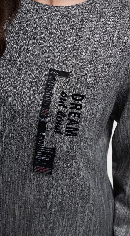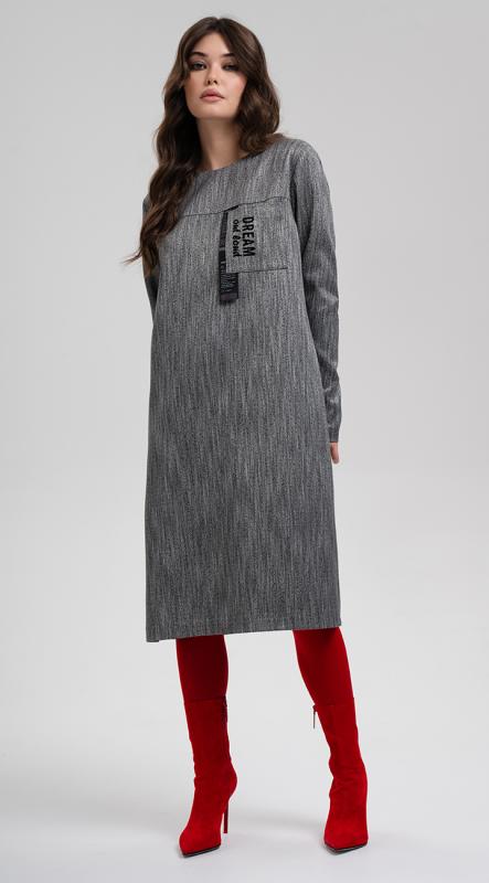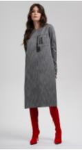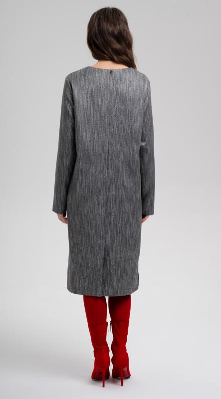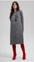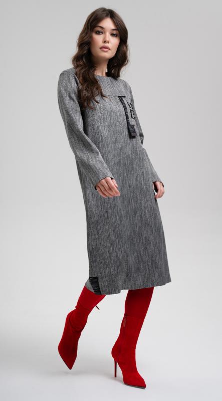 Платье прямого покроя из костюмной поливискозы с легким мерцанием в сочетании с контрастной тесьмой и термотрансфера из черного бархата - поможет создать стильный и уверенный образ. Рукав рубашечного типа полной длины. Потайная молния в среднем шве.