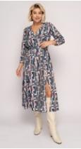 - великолепным образом дополнит базовый гардероб. V-образный вырез эффектно подчёркивает шею и слегка удлиняет её. Втачной рукав 3-4 на притачной манжете. Резинка на талии сформирует идеальный женственный силуэт песочных часов. Платье дополнено съемным поясом.