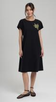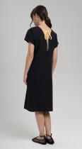 Платье А-силуэта длиной до колена, со спущенной линией плеча и с V-образным вырезом по спинке из хлопка с добавлением волокон льна - один из фаворитов летней коллекции, и это не удивительно. Ведь оригинальный крой делает его абсолютно комфортным и позволяет садиться на любую фигуру. Добавит эксклюзивности термотрансфер и шнур по спинке контрастного цвета.