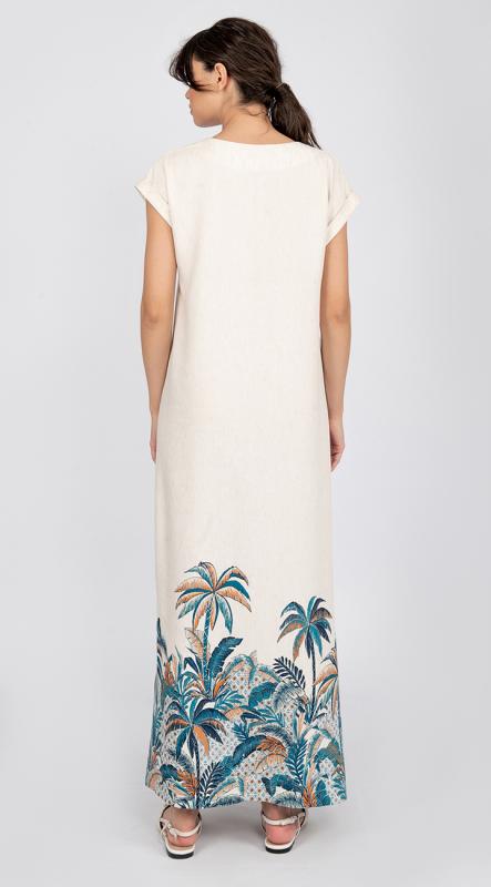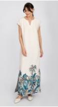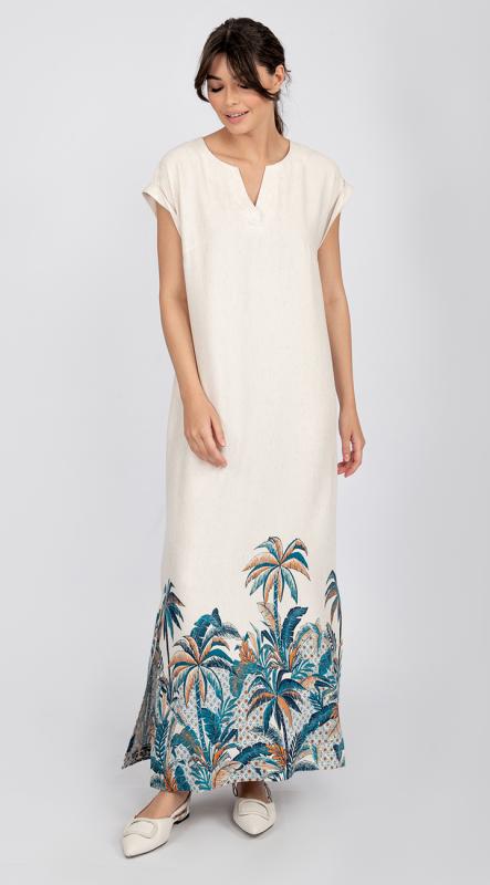 Прямое платье с цельнокроенным коротким рукавом и высокими разрезами длиной maxi - обеспечит комфортную посадку и выгодно подчеркнет достоинства фигуры. А уникальное сочетание льна с добавлением волокон вискозы и сделают это платье комфортным и универсальным в жаркий летний день! Добавит настроения - оригинальный принт по низу платья.