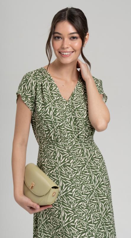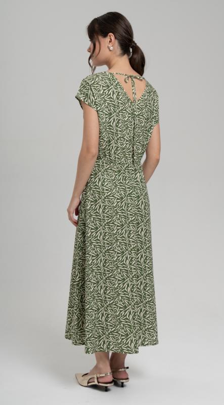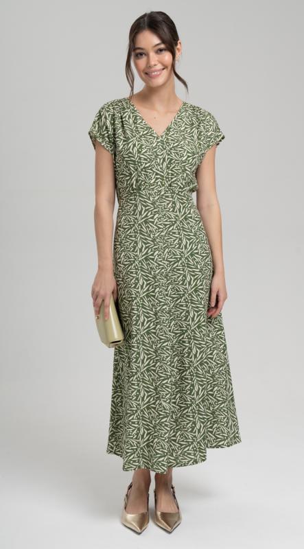 Нежное платье длиной midi полуприлегающего силуэта с V-образным вырезом и красивым подрезом под грудью и спущенным плечом из струящейся вискозы с добавлением волокон льна- подчеркнет женственность и без всяких сомнений сделает ваш образ эффектным и незабываемым! Его стоит примерить лишь раз, и оно станет вашей любимой вещью. Резинка по талии на спинке формирует идеальный женственный силуэт песочных часов.