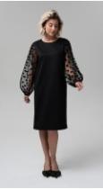 Комбинированное платье прямого силуэта с фантазийными рукавами из трикотажного полотна в сочетании с сеткой - поможет создать стильный и запоминающийся образ. Вертикальные рельефы с карманами - зрительно вытягивают силуэт и добавляют актуальности.