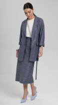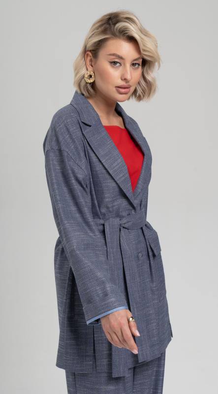 Удлиненный жакет свободного кроя с английским воротником, со спущенной линией плеча, с накладными карманами с клапаном из костюмной поливискозы с меланжевым переплетением - поможет создать стильный и уверенный образ. В предстоящем сезоне стилисты рекомендуют добавлять жакет в абсолютно любой образ от классического до вечернего. Жакет можно носить отдельно или в комплекте с брюками или юбкой из той же коллекции для монохромного образа в духе последних тенденций. Рукав рубашечного кроя полной длины имеет широкую подгибку, что позволяет собрать его или завернуть на мягкую манжету. Жакет дополнен съемным поясом. Застежка на петли и пуговицы.