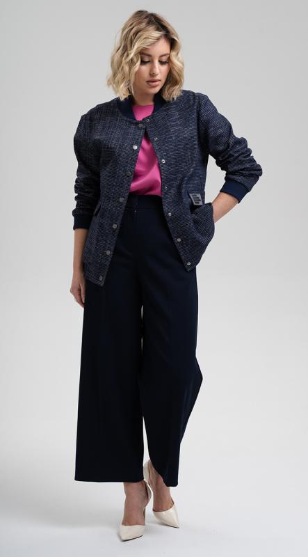 Стильный объемный бомбер с декоративными клапанами и карманами из костюмной поливискозы - исполнен с учетом всех последних тенденций моды и прекрасно подойдет для создания образов в стиле casual. Уникальное сочетание стиля и комфорта. Рукав рубашечного кроя полной длины. Бомбер с манжетами, поясом и воротником из трикотажного кашкорсе. Застежка на кнопки.