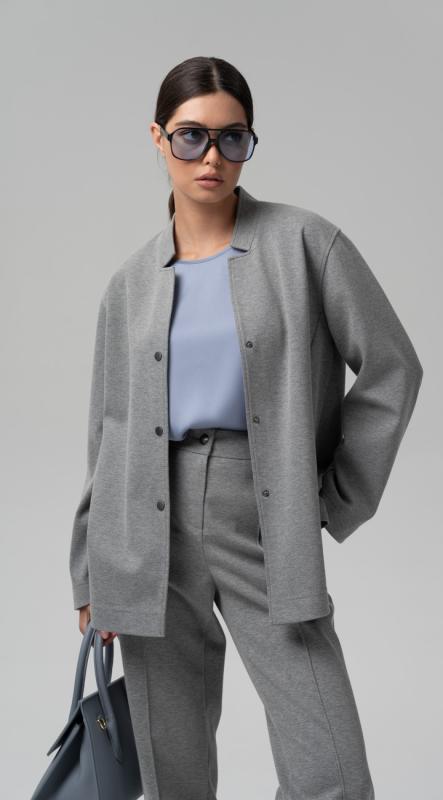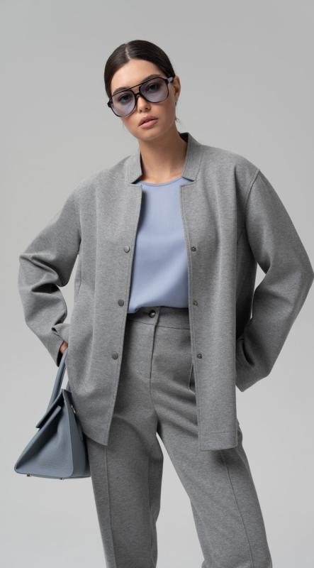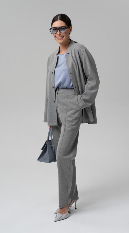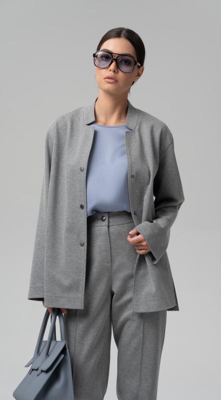 Удлиненный жакет с оригинальным воротником, с потайными карманами и высокими разрезами из трикотажного полотна - беспроигрышный вариант, который "
