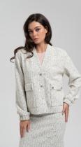 Эффектный кардиган с V-вырезом из костюмного жаккарда - идеально впишется в гардероб любой женщины и с легкостью станет его базовым атрибутом. Накладные функциональные карманы и свободный силуэт делают кардиган особенно комфортным и универсальным для любой фигуры. Широкий втачной рукав рубашечного кроя с притачной манжетой на резине. Застежка на кнопки.