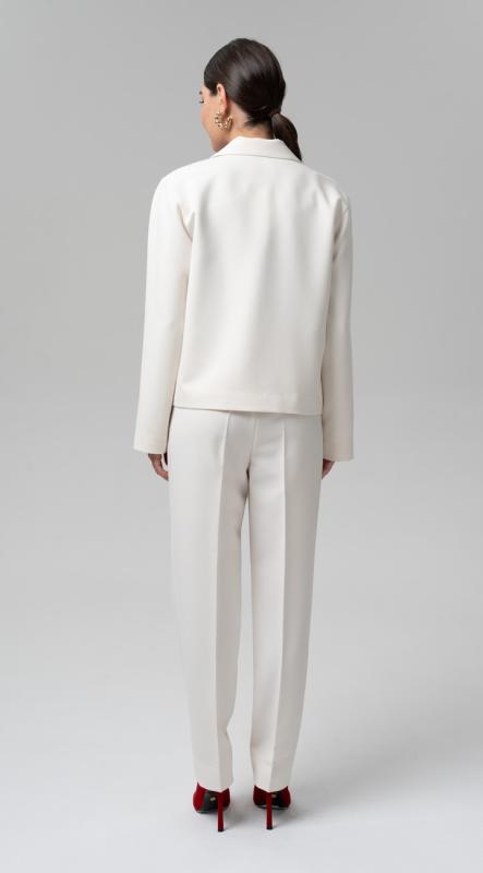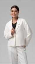 Укороченный жакет станет эффектной альтернативой классическому жакету. Фактурная ткань и детальная точность изделия моделируют идеальную посадку по фигуре. Жакет станет ярким акцентом как в повседневном образе, так и в вечернем, а прямой силуэт и английский воротник красивой формы - придадут лаконичности. Рукав полной длины. Акцентная пуговица - примечательная деталь этой модели.