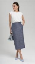 Юбка-карандаш, слегка зауженная к низу на поясе-кокетке и классической шлицей в среднем шве - уже давно стала базой офисного гардероба. В предстоящем сезоне к ней особое внимание, в связи с трендом на деловой стиль. Потайная молния в среднем шве юбки. Юбка с карманами, на подкладе.