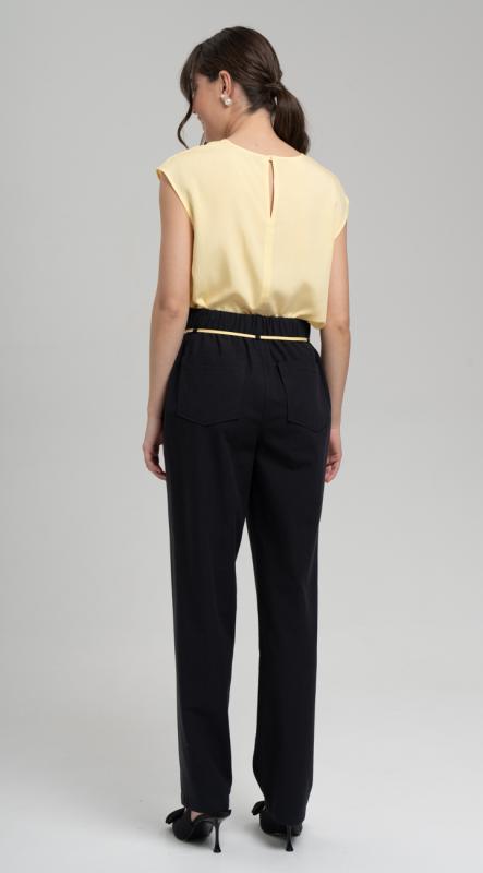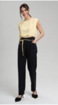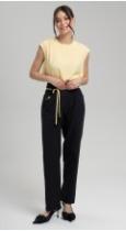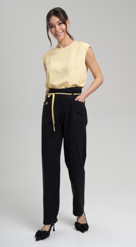 Новые брюки зауженные к низу с оригинальными рельефными швами из вискозы c добавлением волокон хлопка и льна - могут стать фаворитом летнего гардероба. Комфортная посадка на талии, четыре функциональных кармана, притачной пояс с резиной, застегивающийся на пуговицу - делают брюки идеальными для любой фигуры. Обхват талии можно отрегулировать декоративным шнуром. Добавит настроения авторская вышивка на кармане.