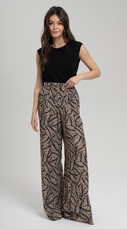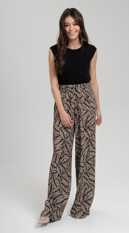 расслабленного кроя из легкой вискозы с флористическим принтом – актуальная находка для летнего сезона. Эластичный пояс на резинке и функциональный шнур - обеспечивает комфортную посадку на талии и делает брюки идеальными для любой фигуры. Дополните летние брюки парной объемной рубашкой, чтобы создать костюм в пижамном стиле.
