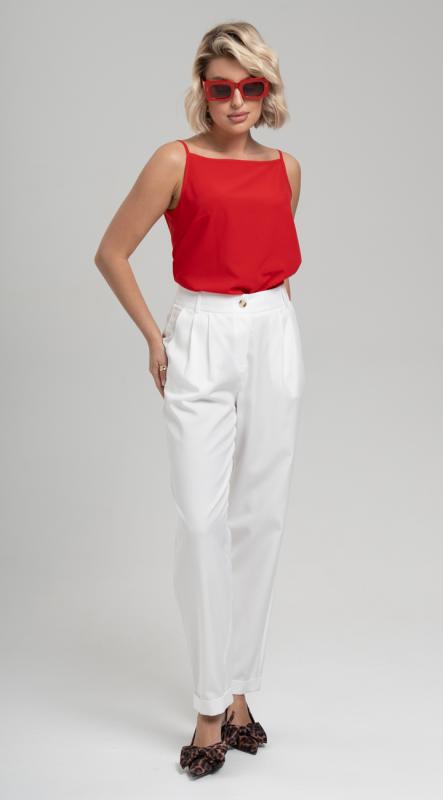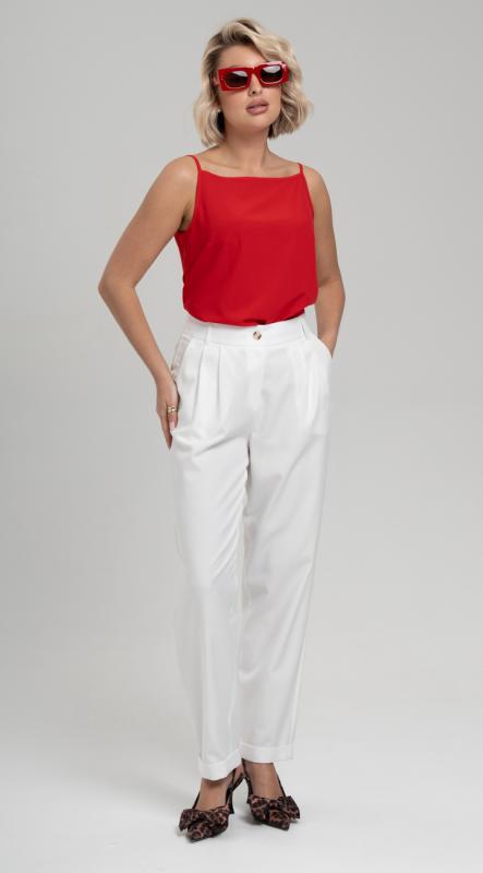 Свободные брюки из хлопка с добавлением вискозы - сочетаются с любым верхом, будь то базовая рубашка или топ в бельевом стиле. Классический крой с защипами, с поясом-кокеткой на эластичной тесьме по задней половинке брюк, застегивающийся на пуговицу и отворотами по низу - подойдет любому типу фигуры, а высокая посадка удлиняет рост и визуально стройнит.